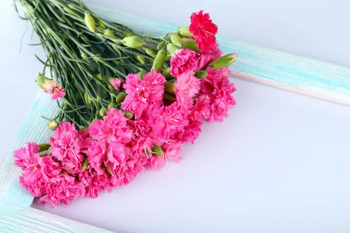- Поддерживайте стабильную температуру. Идеальная температура для срезанных гвоздик - это 18-22°C. Перепады температуры, особенно если они большие, могут повлиять на внешний вид цветов.