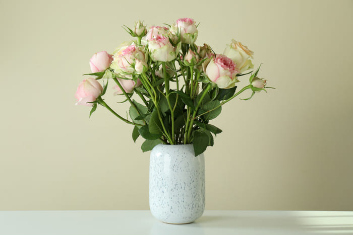 - Для низких букетов подойдут вазы с широким горлышком или вазы-чаши, чтобы максимально раскрыть красоту соцветий.