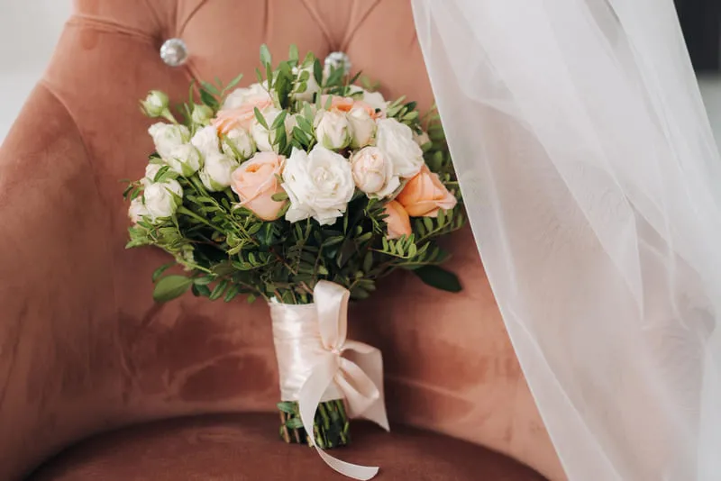 - Для удобства стоит позаботиться о том, чтобы стебли цветов были плотно обернуты. Это поможет защитить руки и платье невесты от случайных царапин или зацепок. Если вы планируете составить букет новобрачной из роз, то заранее побеспокойтесь о том, чтобы при сборке композиции были удалены все шипы, иначе пальцы девушки будут исколоты, а настроение – испорчено.