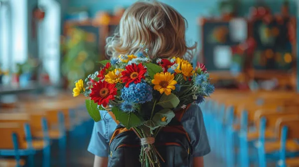 При выборе букета для первоклассника важно учитывать возрастные особенности. На первом месте должна быть безопасность, поэтому рекомендуется выбирать букеты без острых и ядовитых растений. Обязательно учитывайте цветовую гамму и форму букета, предпочтения ребенка. Оптимальным выбором будут яркие и красочные композиции с игрушками или шариками, которые обязательно понравятся малышу. Важно учитывать размер букета, чтобы он был удобным, не тяжёлым, не перегружал ребенка. Цветочная композиция для первоклассника должна радовать и дарить позитивные эмоции, поэтому выбирайте его с учетом интересов и предпочтений ребенка. Можно подключить первоклассника к этому процессу. Ребенку наверняка понравится выбирать цветы для первого учителя.