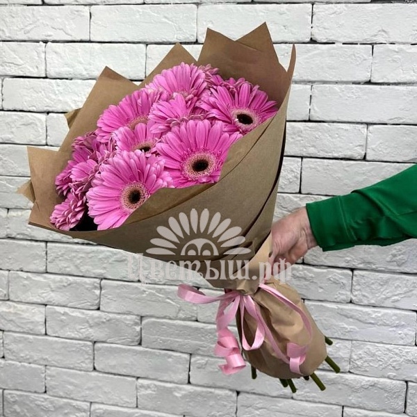 Букет 15 розовых гербер