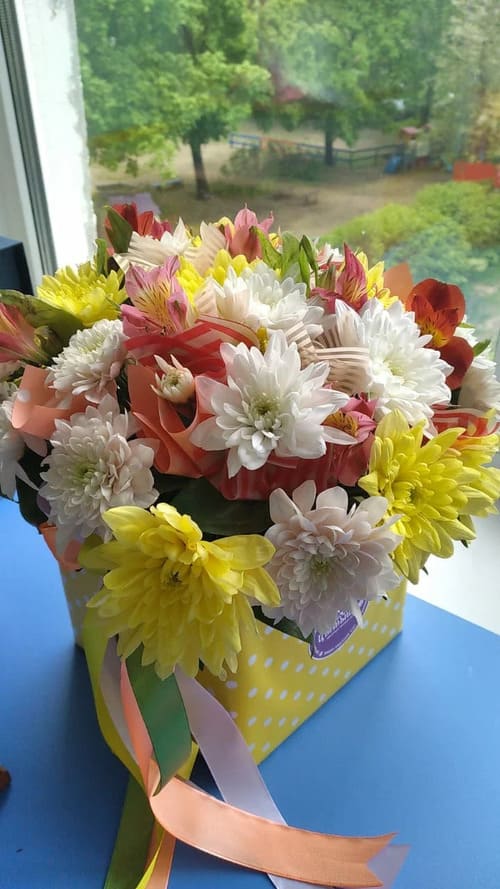 Хризантемы — самобытные растения, сохраняющие надолго природное очарование. Цветок символизирует нежность, любовь, доверие. Букет из хризантем в моно исполнении или флористическая композиция позволяет поздравить друзей, родных или возлюбленную со значимыми событиями. Стильно оформленный флористами букет дарят педагогам, учителям, коллегам в знак признательности, уважения и благодарности.
