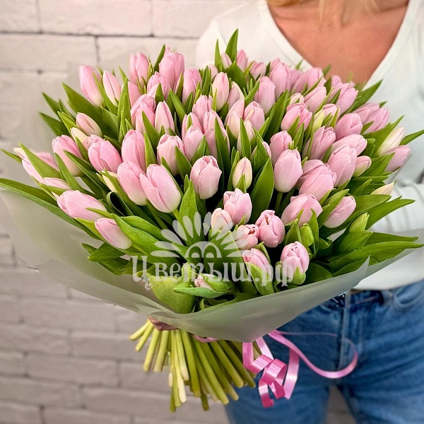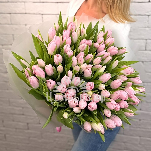Букет из 101 тюльпана в упаковке — это не просто цветы, а настоящее произведение искусства, сочетающее природную красоту и рукотворное мастерство. Представьте: 101 тюльпан, будто сотканный из шёлка, собран в монументальную композицию. Их лепестки могут быть однотонными, например, алыми, как закат, или нежно-розовыми, словно румянец, а могут сливаться в радужный микс, где каждый оттенок — от лимонного до глубокого фиолетового — добавляет свой характер.