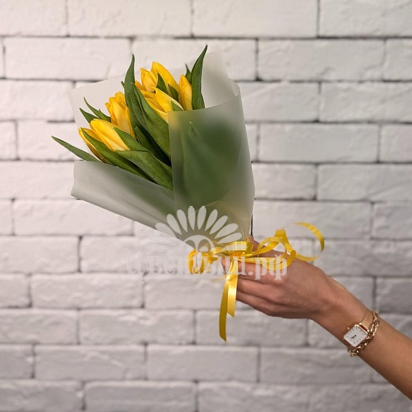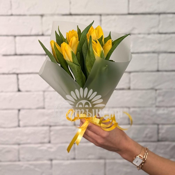 Букет 9 жёлтых тюльпанов