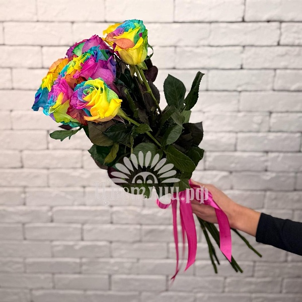 Букет из 11 роз Эквадор «Rainbow» органично вписывается в интерьер офисных пространств, переговорных, ресепшн‑зон или домашнего окружения, создавая визуальный акцент и подчеркивая внимание к деталям. Он помогает выразить благодарность, признательность и тёплые пожелания, формируя благоприятное впечатление у получателя.