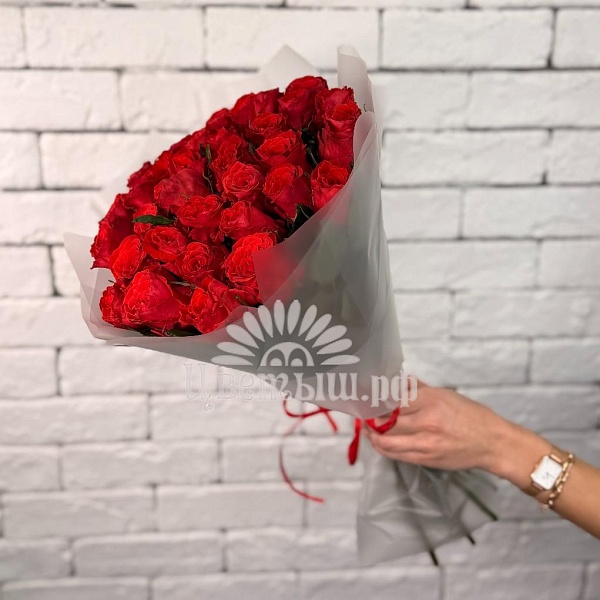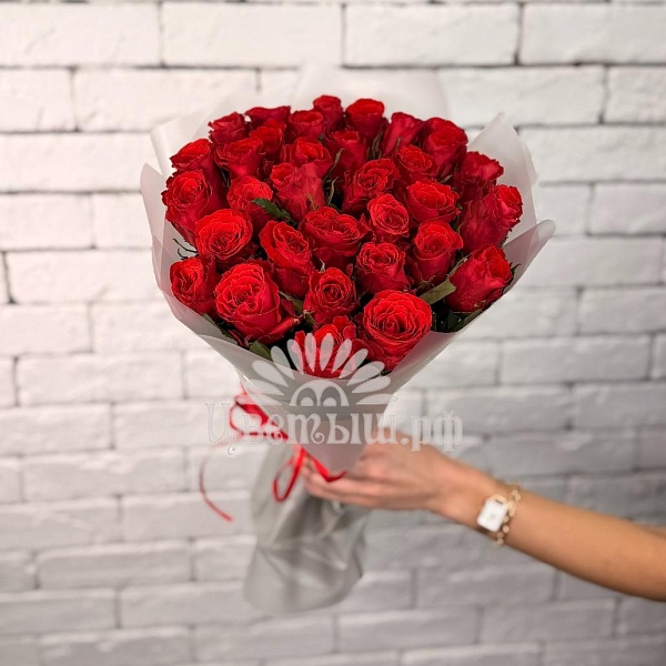Букет из 33 розы – чувственная композиция для самых любимых. Бутоны с бархатистыми лепестками создают ощущение торжества и сказки. А легкий аромат уносит в мир беззаботности и блаженства.