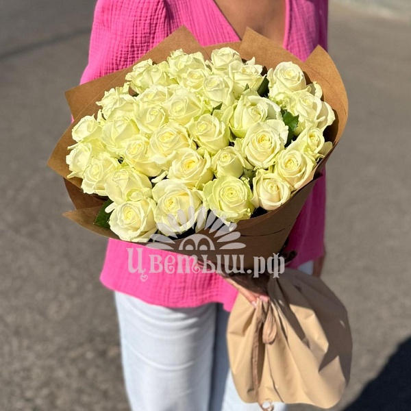 Очаровательный букет из 33 розы Avalanche – лаконичный и торжественный подарок на любое событие. Воздушная охапка из изящных цветов с бархатистыми бутонами покоряет нежностью и неповторимым видом. Ее хрупкость и красота подчеркнута крафт бумагой и небольшой ленточкой.