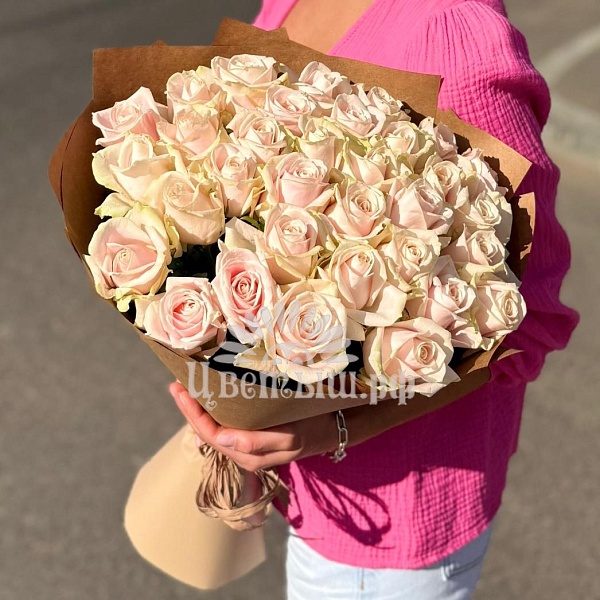 Букет 33 розы Sweet Avalanche – сочетание утонченности и лаконичной роскоши. Композиция из цветов с махровыми бутонами розового оттенка и легкими переливами фисташкового. Она напоминает воздушный ягодный зефир – такой же изысканный, сочный и ароматный.