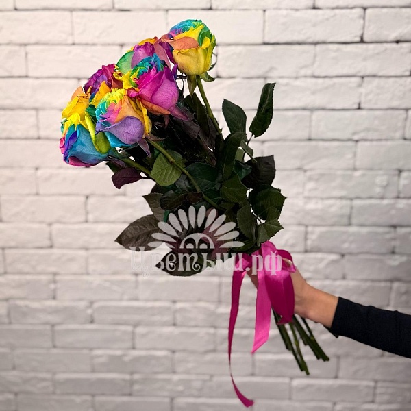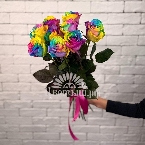 Букет из 9 роз Эквадор «Rainbow» легко вписывается в интерьер офисных пространств, переговорных, ресепшн‑зон или домашнего окружения, создавая визуальный акцент и подчеркивая внимание к деталям. Он помогает выразить благодарность, признательность и тёплые пожелания, формируя благоприятное впечатление у получателя.