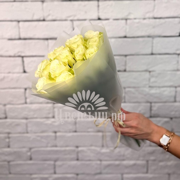 Букет из 15 белых роз в упаковке