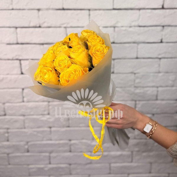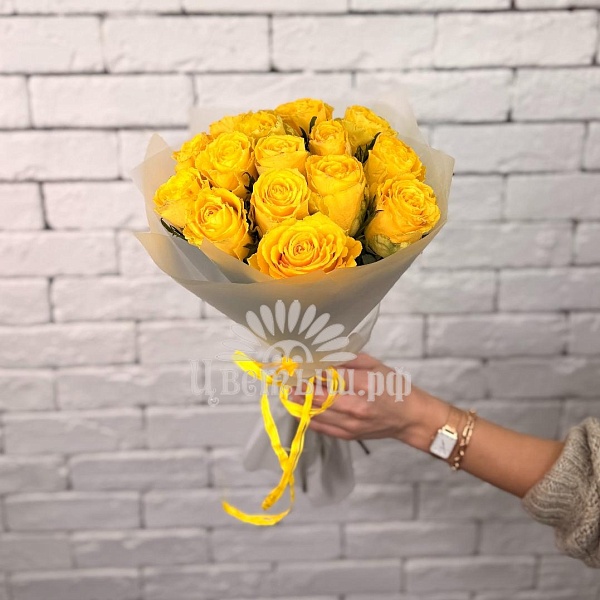 Букет из 15 желтых роз в упаковке