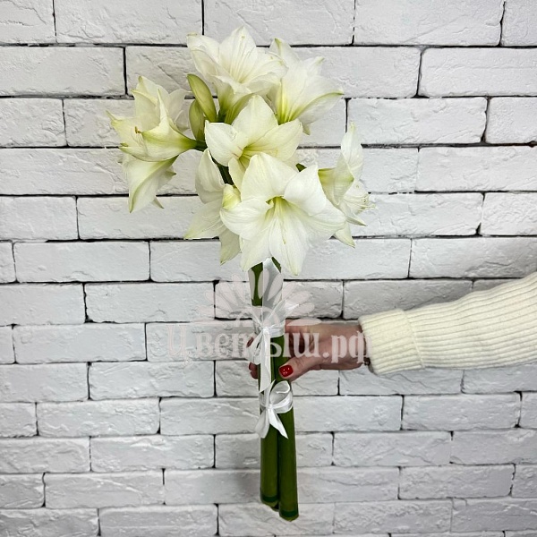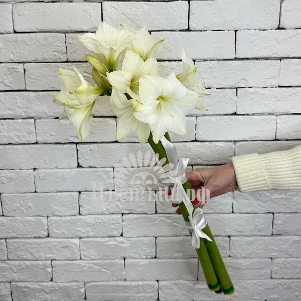Букет из трех амариллисов ― элегантная, изысканная композиция, привлекающая внимание своей роскошной простотой. Крупные воронковидные бутоны этого цветка символизируют гордость, красоту, успех. 3 амариллиса в букете смотрятся гармонично, создают воздушный, выразительный образ.