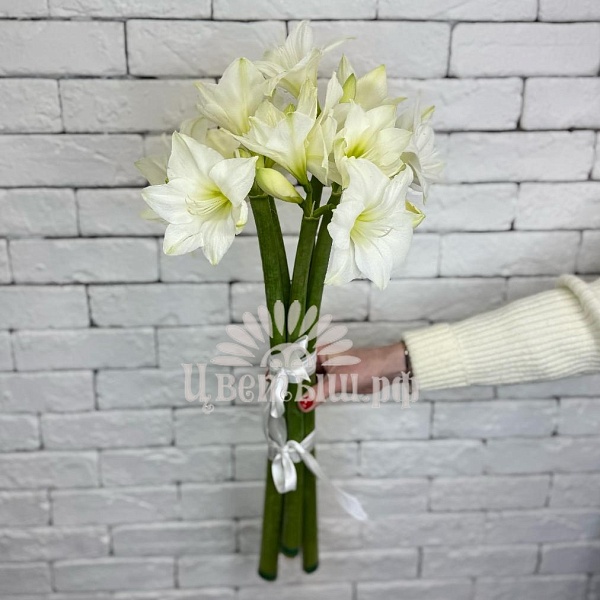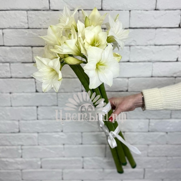 Букет 5 белых амариллисов
