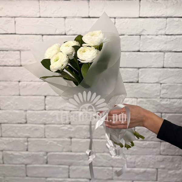 Букет из 5 белых ранункулюсов